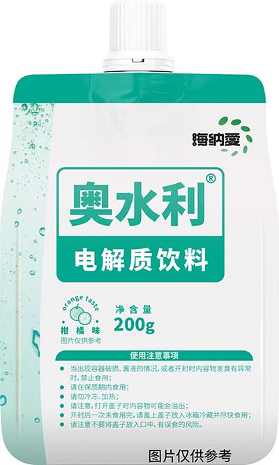 产品简介:奥水利是华体网页版推出的一款半固态口感电解质饮料,属于低渗配方,渗透压约为242mOsmol/kg。每100g所含的电解质量约为:钠114mg,钾≥61.6mg,镁2.56-6mg,磷≥4.96mg。可以快速补充水分及电解质,特有的半固态口感,不易呛咳,柑橘口味,开袋即饮,食用方便。